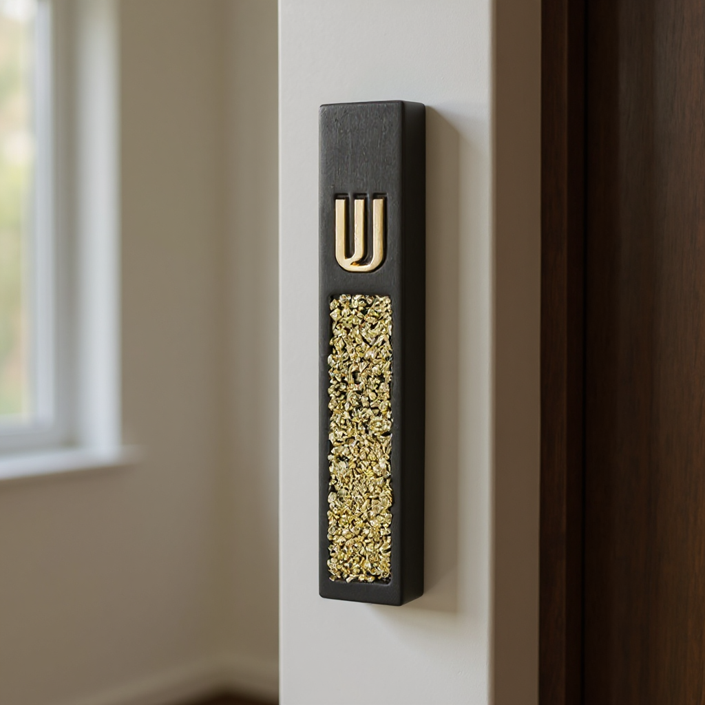 מזוזת בטון שחור משובצת באבנים מנצנצות – 12 ס"מ. מראה יוקרתי ואלגנטי עם תחושת עומק וייחוד. תוספת מעוצבת לפתחי הבית.