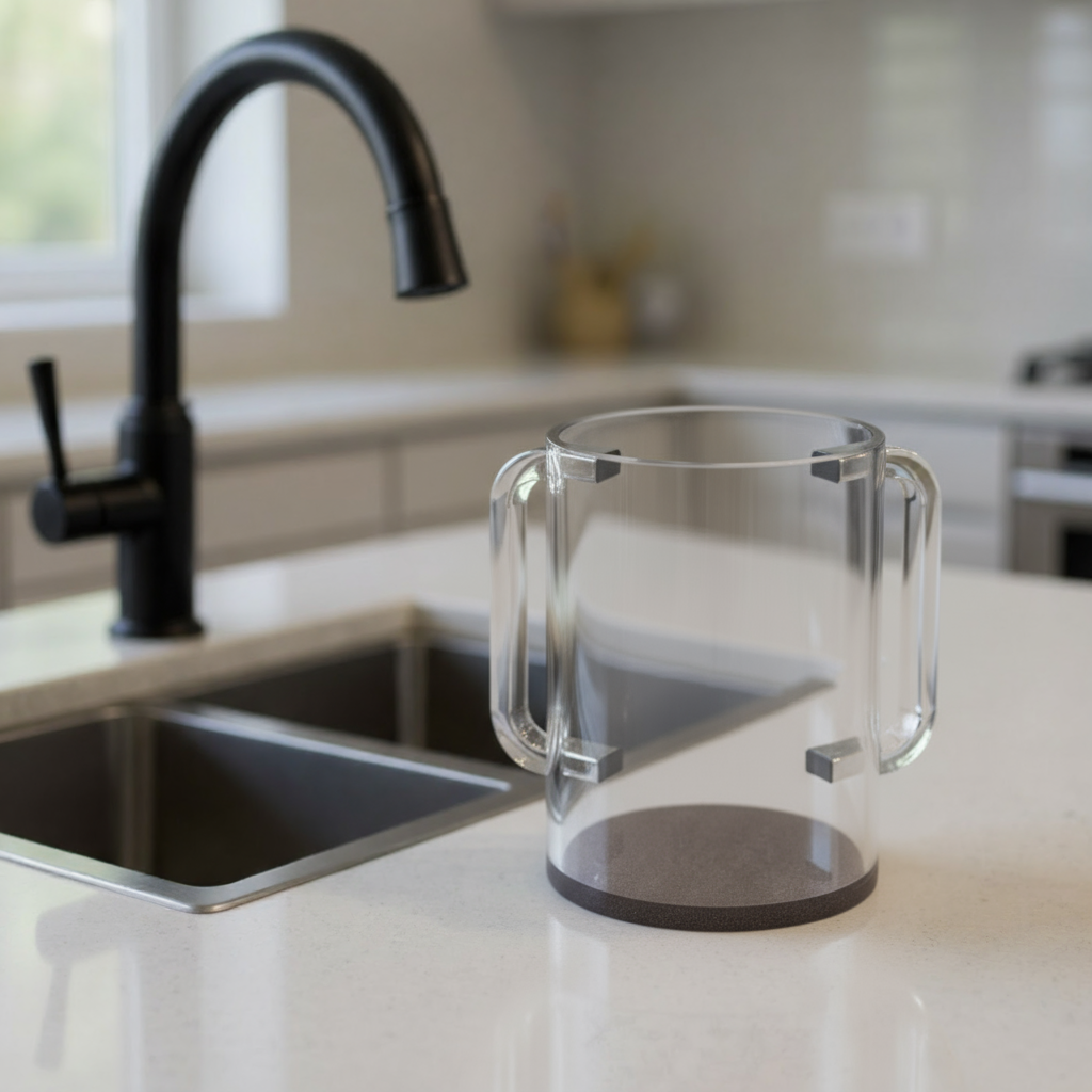 נטלה שקופה בעיצוב פרספקס עם ידיות כסף מבריקות. עיצוב מודרני ויוקרתי לשימוש יומיומי בנוחות מירבית. מתאימה לכל בית, כולל בתי מלון או חדרי אורחים.